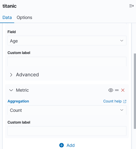 Metrics 값에서 원하는 통계값은 "Average", 해당하는 필드는 "Age"