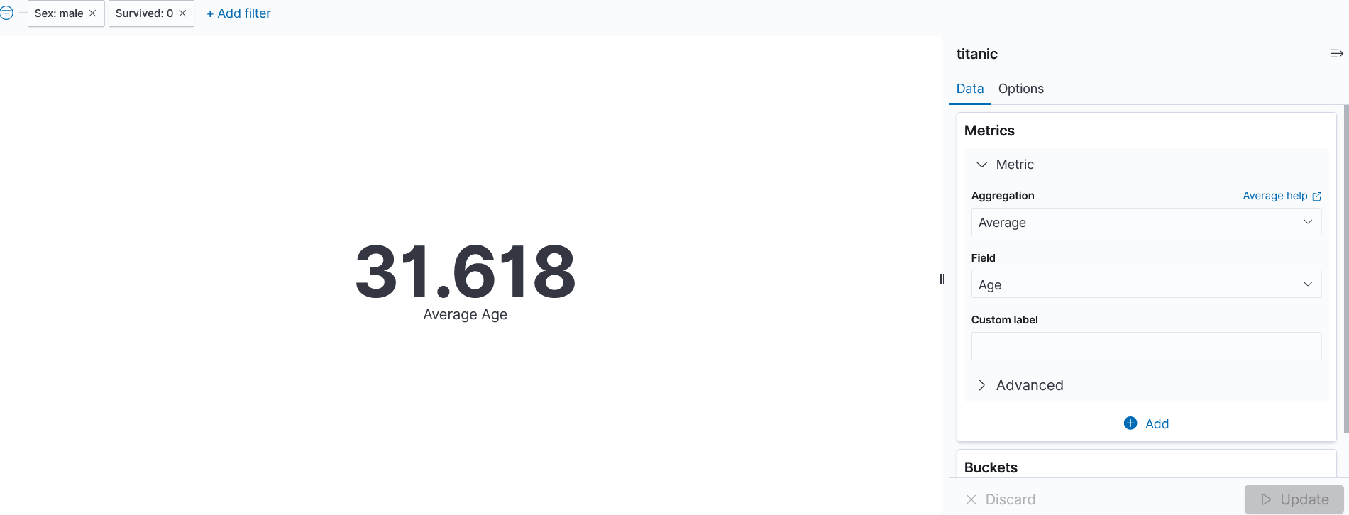 Add Filter를통해 남성 사망자의 평균나이는 31.618세 인 것을 확인할 수 있습니다.