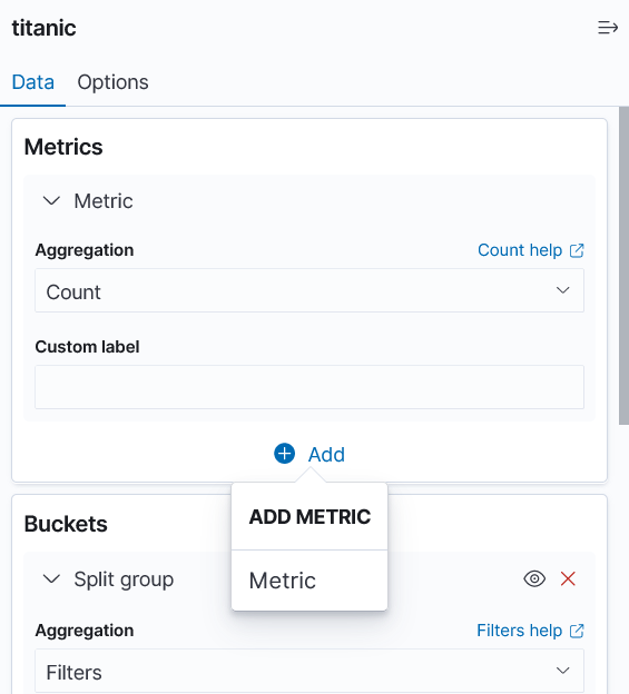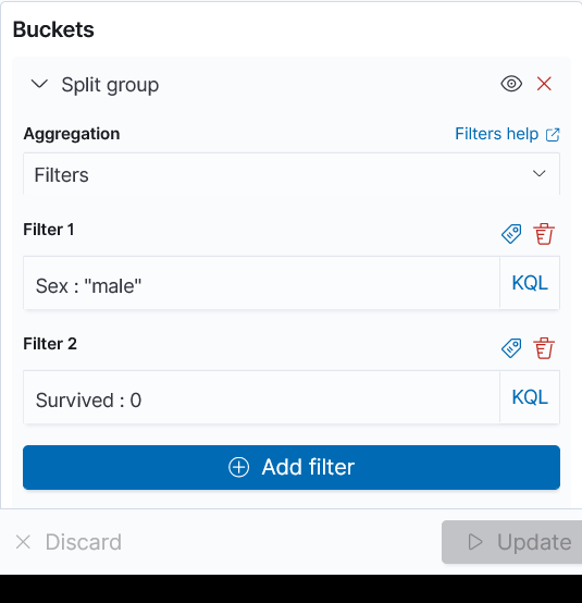 Bucket에서 Aggregation을 Filters로 두고 두 조건을 설정합니다.