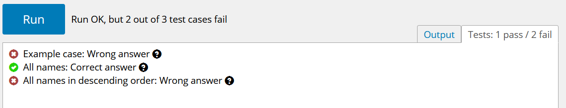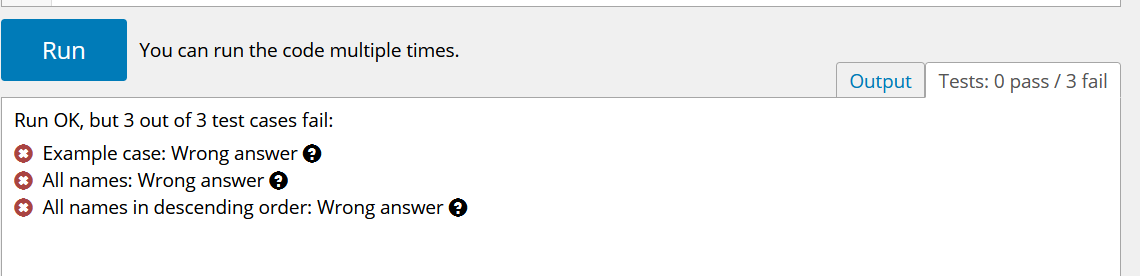 본인이 적은 결과물이 미리 저장되어있는 정답과 같으면 문제없이 다음 문제로 넘어간다.