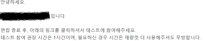 면접 이후 3일 이내로 풀어 제출해달라는 요청을 받았다.