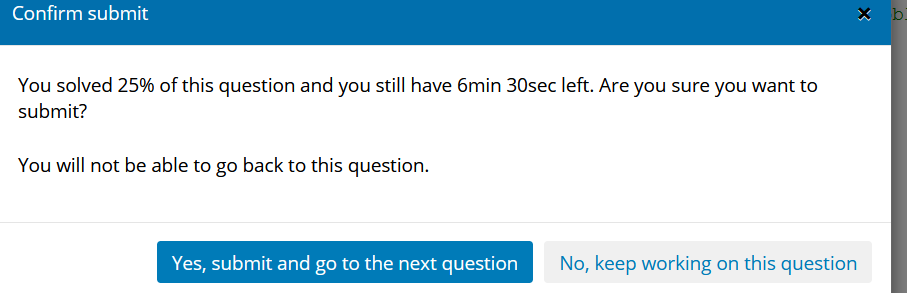 하지만 정답이 아닌 쿼리를 Run 하고 submit&next를 하면 아래와 같은 경고가 뜬다.
