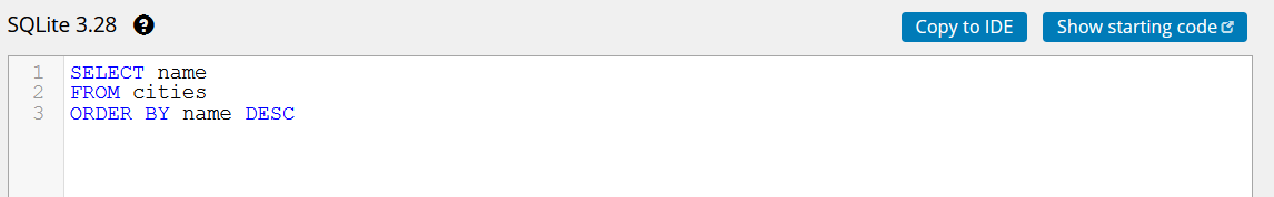 ORDER BY name DESC