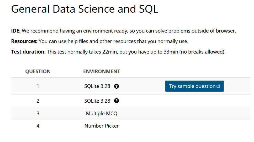 TestDome의 샘플문제유형에는 SQL 테스트를 비롯해 기초통계문제가 나왔다. (물론 영어로)